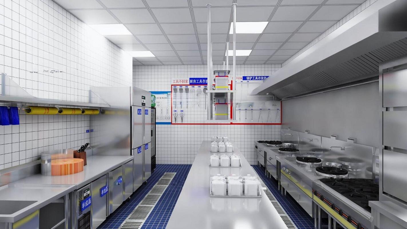 此外,廚房設(shè)計公司還要考慮地面、墻面應選用防滑、易清潔的材料;合理布置燈光,確保操作區(qū)域光線充足;選用符合衛(wèi)生標準、質(zhì)量可靠的不銹鋼廚房設(shè)備等,以打造一個高效、衛(wèi)生、安全的食堂廚房環(huán)境。